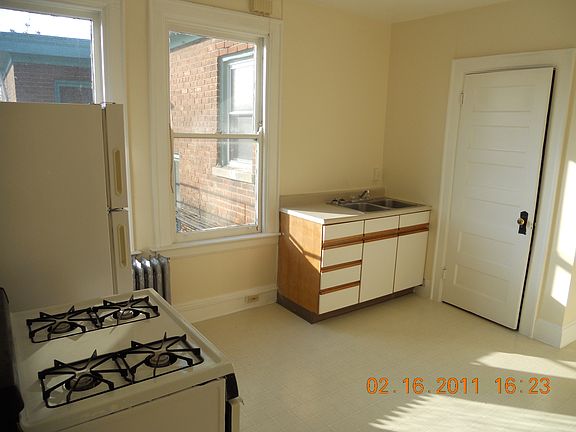 HEAT INCLUDED IN THE RENT! Freshly painted, finished wood flooring, historical architecture, large windows, Claw foot bathtub with shower, large open eat-in kitchen with large pantry cupboard, Pocket doors which open to create a larger great room, laundry in basement, nice private setting in the heart of the Northside Historical Business District.