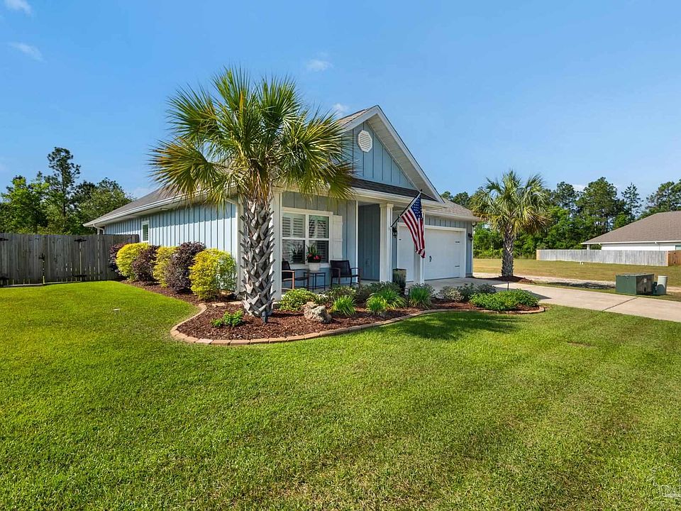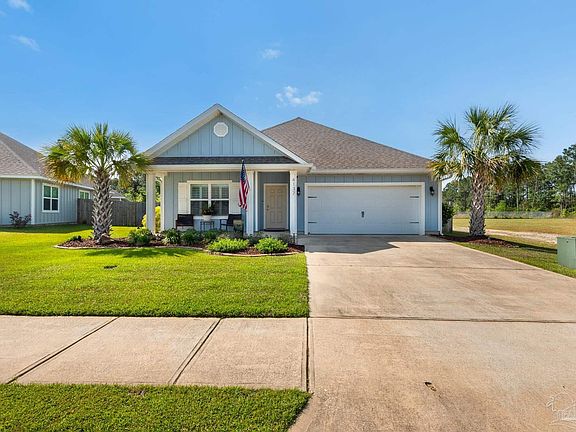 This large lot, with a beautiful home on 1/4 acre, equipped with Generac 22KW generator with automatic start during commercial power loss, backs up to federally protected woods and is perfect for the whole family to enjoy.  Bordering the west side of the property is a beautiful open space owned by the HOA, offering even more privacy to this home.  Wood plantation shutters throughout the house, trey ceilings in the living room - the open and airy kitchen offers a corner pantry, stainless steel appliances, granite countertops, under mount sink and double-sided center island that allows for 3-4 barstools. Master bedroom features trey ceilings and connects to the ensuite bathroom. An impressive 5ft shower and garden tub make this a relaxing retreat. This bath also features double vanities, a huge walk-in closet and a separate water closet. This beautiful home includes a covered and screened back porch, 340 sq ft of wrap around concrete patio, a wired lighting system in the front and the backyard, beautifully accentuating the home and trees at night, making it a beautiful and peaceful end to your day. Finally, it has professionally installed gutters with 3 of the 4 downspouts routed underground to protect the foundation.  Two large fans are mounted in the Garage to keep people who like to tinker comfortable.  For the generator, a concealed 500-gallon propane tank was installed in 2021 and Hurricane Fabric Shields are on hand. Additionally, this home has full access to the COMMUNITY POOL at Robinson Estates (community next door), SIDEWALKS to Benny Russell Park w/ splash pad, playground and picnic area. Publix grocery & golf course are only 2 ½  miles away.  Target, TJ Maxx, Home Depot and restaurants are only 11 minutes away with Walmart and McDonalds two blocks away, both coming in the Fall.