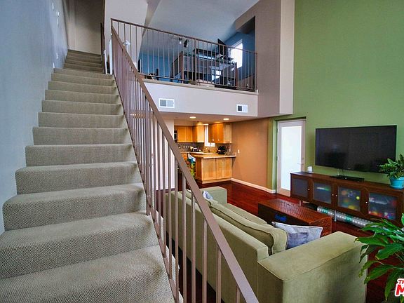 Gorgeous, bright, newer tri-level townhome. On the first level are 17-foot ceilings, Brazilian cherry wood floors, stainless kitchen appliances, granite countertops, spacious living area, two patios, and a half bath. Level two has a large open loft/3rd bedroom with a closet and a laundry area. Level three has two bedrooms: the first bedroom is a master suite with a private bathroom and spa tub and a private balcony, and the second is an additional bedroom with a full hall bath. The rooftop deck has views of the city including the iconic Hollywood sign. Short drive to Downtown Culver City, the beach and walking distance to shops and restaurants. Two subterranean parking spaces plus 2 guest spots. Feels like a private home with only 8 units in the building.