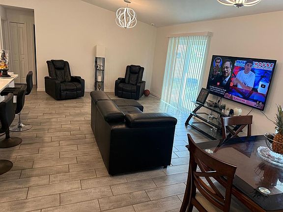 Short Sale. Stunning 3 Bedroom Home With Modern Upgrades • No HOA • No CDD • Move-In Ready! Welcome to this beautifully maintained 3 bedroom, 2 bath, 2-car garage home offering the perfect blend of comfort, space, and modern living—all with NO HOA and NO CDD fees! Located in a peaceful area surrounded by newer homes, this property provides the freedom and lifestyle today’s buyers are searching for. Step inside and you’ll immediately love the inviting open-concept layout, featuring elegant tile flooring throughout the main living areas, a spacious great room, and sliding glass doors that fill the home with natural light. The kitchen is the true centerpiece, boasting white cabinetry, stainless steel appliances, a large island with bar seating, and a sleek modern backsplash—perfect for cooking, entertaining, or enjoying morning coffee . The primary suite offers generous space, a walk-in closet, and a well-appointed bathroom. Two additional bedrooms are ideal for family, guests, or a home office. The secondary bathroom features updated finishes and a clean contemporary look. Outside, enjoy a large backyard with ample room for a pool, play area, garden, or outdoor entertaining. The home sits on a wide lot and includes a spacious driveway and a 2-car garage with excellent storage capability.