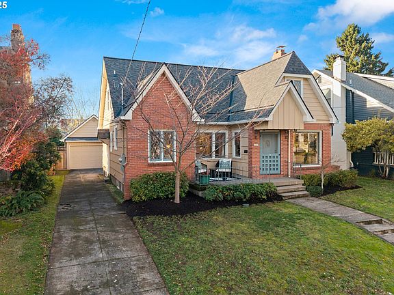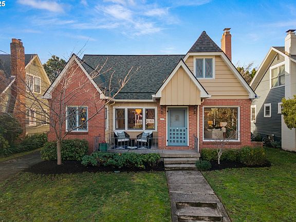 Situated in the highly desirable Alameda neighborhood, this 1934 Tudor blends timeless architecture with modern, high end updates. With 4 bedrooms and 3 bathrooms, the layout offers both comfort and flexibility, including a full floor primary suite that lives like a private retreat. This serene upstairs space features its own fireplace, a lounge style sitting area, generous storage, and classic Tudor character throughout. Period craftsmanship is beautifully preserved with leaded glass windows, coved ceilings, unpainted woodwork, vintage lighting, and hardwood floors that create an inviting warmth newer homes can’t replicate. The kitchen, fully renovated in 2024, serves as the true centerpiece of the home. Designed for both beauty and everyday function, it features custom cabinetry, quartz counters, a copper apron front sink, double ovens, pot filler, upgraded lighting, and thoughtful storage solutions, including custom drawer systems and a pull out lift for heavier appliances. Three fireplaces add warmth to the home, one showcasing original Ernest Batchelder tile depicting Multnomah Falls. The finished lower level adds valuable flexible space that can be ideal for a media room, fitness area, or home office, laundry and plenty of storage. Major improvements provide peace of mind: a new roof with transferable warranty (2025), updated electrical panel (2022), cedar siding (2021), and central AC. The oversized, garage is finished with sheetrocked walls and is EV-ready and also includes attic storage and ample room for gear. All of this is just blocks to the vibrant Alberta Arts District, known for its restaurants and cafés, boutiques, and lively community events. Add the Grant High School boundary, and the location checks every box. Homes with this level of craftsmanship, care, and design rarely come to market and this one stands out for all the right reasons. [Home Energy Score = 1. HES Report at https://rpt.greenbuildingregistry.com/hes/OR10195603]