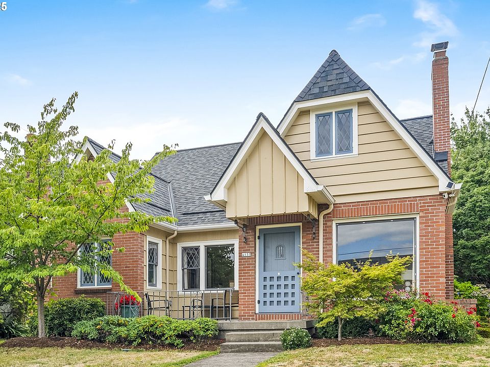 New price! Open House Sunday, October 5, 11-1. This inviting 1934 Tudor in Portland’s beloved Alameda neighborhood blends timeless charm with stunning modern updates. Located in the highly sought-after Grant High School district, the home features 4 bedrooms and 3 bathrooms, including a spacious upstairs primary suite that feels like a private retreat, complete with a cozy sitting nook and a fireplace. Throughout the home, you’ll find beautifully preserved vintage details—wood floors, leaded glass windows, coved ceilings, original unpainted woodwork, and period light fixtures. One of the three fireplaces features striking Batchelder tiles, including one depicting Multnomah Falls. The designer kitchen, completed in 2024, is a showstopper; remodeled to the studs and filled with custom cabinetry, quartz countertops, a copper apron sink, double ovens, a pot filler, and thoughtful storage and lighting throughout. A finished basement adds flexibility with a bonus room, bedroom/office, additional storage, plus a large utility area. System updates include a brand-new roof (June 2025) with a transferable warranty, new electrical panel (2022), central AC, and newer cedar siding (2021). The oversized one-car garage includes an EV charger and attic storage. Outside, enjoy mature landscaping including hydrangeas, lilacs, roses, daphne, and a cherry tree that blooms outside the kitchen window, as well as a welcoming front patio. This friendly neighborhood—known for its annual block party—is just minutes from Alberta Street’s shops, restaurants, and nightlife. A rare blend of warmth, beauty, and modern functionality—this home is truly one of a kind. [Home Energy Score = 1. HES Report at https://rpt.greenbuildingregistry.com/hes/OR10195603]
