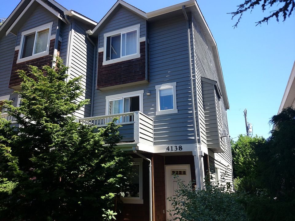 Spacious end-unit townhome in an enviably convenient West Seattle destination. Commute to downtown in minutes or stay in the neighborhood and enjoy the restaurants in Admiral and the Junction.Upstairs there are two large bedrooms with vaulted ceilings, a full bath and laundry. The garden level features a guest room/office plus bathroom and garage access. West-facing living room opens to a balcony. The eat-in kitchen is a fun place to cook and entertain.Refinished wood floors. Multiple views of stunning Mt Rainier. Walk score=84.