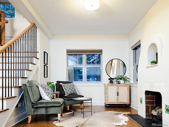Contemporary, two-story Tudor on 8,070 sq ft lot in premiere Sunnyside location. This property's liberal U-SU-C1 zoning may allow for an Accessory Dwelling Unit! Inside, original charm meets modern-day updates ~ a wide, custom staircase is the home’s centerpiece... it leads to the second-floor addition (2012), designed with a spacious primary suite with volume ceilings, private deck (city views) ensuite bath (dual vanity, walk-in shower, private commode) and walk-in closet ~ as well as a loft/office space, another bedroom and full bathroom. On the main level, natural hardwood floors and a modern country kitchen with butcher block counters, stainless steel appliances, stacked plate storage, glass front cupboards and pantry. A kitchen bar provides seating for quick, casual meals while a formal dining room is perfect for sit-down dinners. Downstairs you’ll find a stackable washer/dryer, another full bathroom, a (non-conforming) bedroom, office and flex space (think exercise room, play space…). The front yard is xeriscaped with purple sage, cactus and succulents. The expansive, park-like backyard features a sprinkler system... it's wooded, private and features a covered back patio, solar exterior lighting, custom flatwork, built-in outdoor grill, mature peach trees and raised garden beds with installed drip-watering system. The very back of this lot was previously home to four friendly hens (note the attractive/newer chicken “shed”). Newer windows throughout, updated electrical. Newer Pex and copper plumbing. The roofs on home, garage and shed new in 2016. Two newer AC condensers keep this home cool. Bike to LoHi and Downtown ~ walk to a plethora of restaurants and retail shops at Cobbler's Square (El Jefe, Bacon Social, etc.) as well as Sunny's Restaurant, Radiator Coffee House and more!