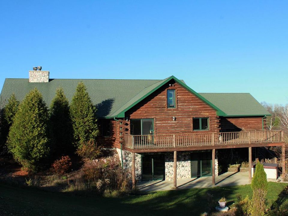 An impressive log home retreat with spectacular views over its 10 acres of beautiful countryside and beyond. Ultimate chef's kit featuring SS appliances, 6 ft hood, fryer grill, plenty of counter top space & cathedral ceilings. Other features include: wrap around deck, a soaring field stone fireplace w/ loft, large main floor master suite with a walk-in tile shower, exposed LL with large wet bar for entertaining in comfort, plenty of storage, and more! You don't want to miss this, schedule a showing today!
