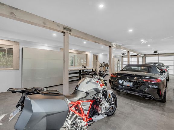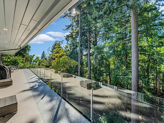 This striking West Coast modern residence perfectly combines architectural elegance w/ natural serenity. Open concept layout. Soaring ceilings & exposed beams add character & volume. Floor to ceiling windows invite natural light & frame lush greenery. The uncluttered living & dining areas extend seamlessly to a sunlit balcony, perfect for entertaining or relaxing in complete privacy. A sleek, minimalist kitchen features premium Miele appliances, custom cabinetry. Lower level offers a spacious flexible area w/ endless possibilities, ideal as a private gym, additional bedrooms, customized to suit lifestyle needs. Uniquely designed garage ideal for collectors / design enthusiasts. This home offers a rare balance of sophistication & calm making every day feel like a retreat in nature.