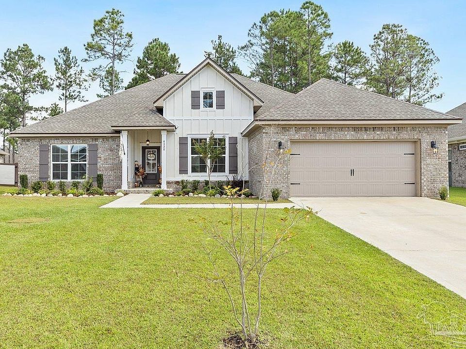 Welcome to 2024-built luxury home in the highly desirable Yellow River Ranch subdivision of Milton, Florida. This 2,514 sq ft single-family residence offers 4 spacious bedrooms and 3 full bathrooms, thoughtfully designed for modern living. The open-concept kitchen features quartz countertops, soft-close cabinetry, a large center island, and premium appliances including a gas oven/range, built-in microwave, and dishwasher. The living and dining areas flow seamlessly, ideal for both everyday comfort and entertaining. Smart home technology includes a Ring doorbell camera and integrated management system allowing remote control of thermostat, lighting, and garage access via mobile device. The covered lanai overlooks a landscaped backyard with a full sprinkler system. Community amenities include a pool, playground, and picnic area, with basketball and pickleball courts currently under construction. Conveniently located near schools, shopping, and outdoor recreation, this home combines style, function, and neighborhood appeal. Schedule your private showing today and experience the best of Yellow River Ranch living.