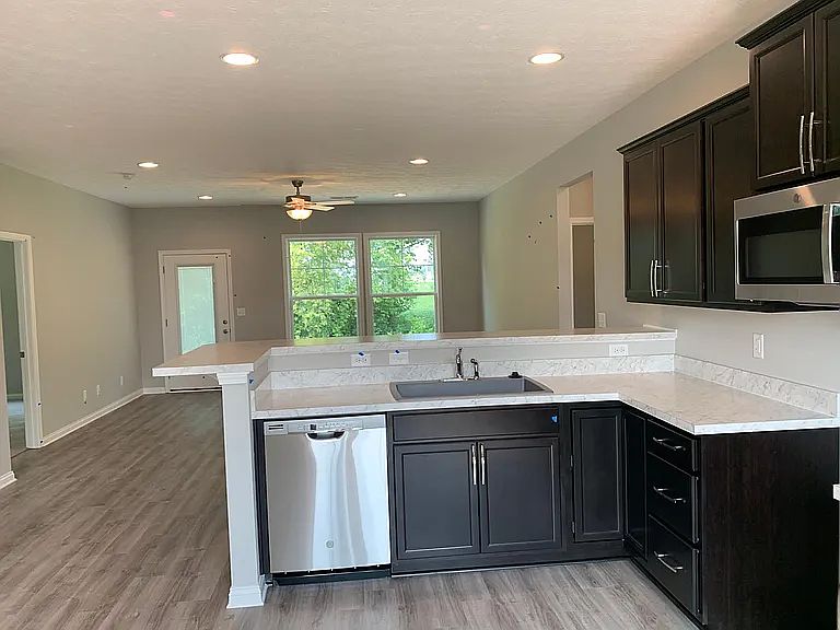 Just built in late 2021 and still like new! Open concept ranch with split bedrooms, oversized windows, recessed lighting in the main living areas, spacious eat in kitchen with peninsula, stainless steel appliances, under cabinet lighting. Luxury vinyl plank flooring in the main living areas. Tree-lined backyard with open field view! Who wants to be only the second person to live in this new, beautiful house?