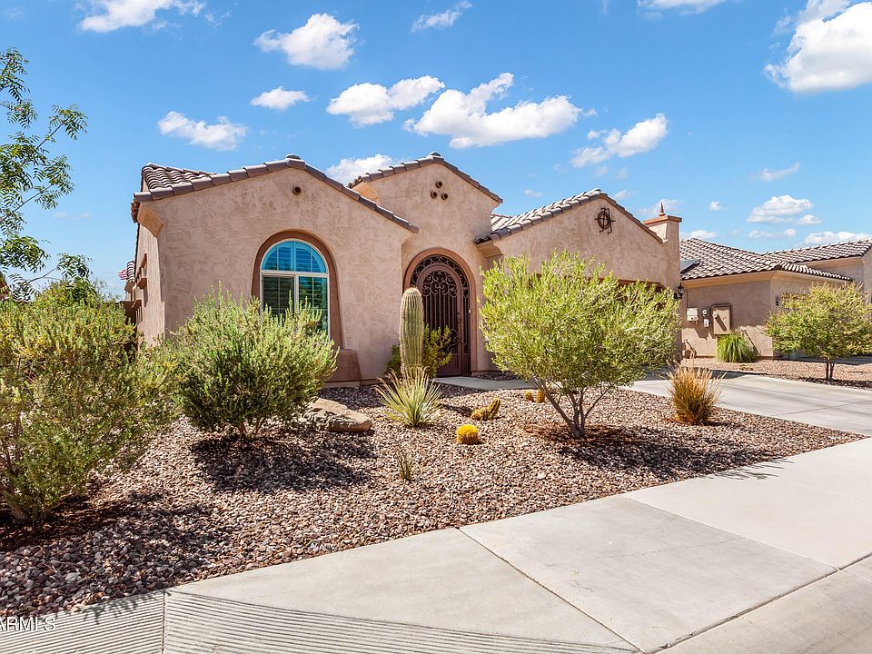The chef's lux kitchen will impress with its walk-in pantry, convenient pullouts, pots and pans drawers, sleek granite countertops, and stainless steel appliances. The spacious great room features a built-in entertainment center and cozy electric fireplace for ambiance or cooler winter evenings. Retreat to the exquisite primary suite, complete with gorgeous walk-in shower, dual sinks, makeup vanity, and granite finishes. The backyard is a true Arizona oasis enjoy raised planter boxes, low-maintenance turf, and a covered paver patio. The side courtyard with its own paver patio and pergola offers another spot to relax or entertain.