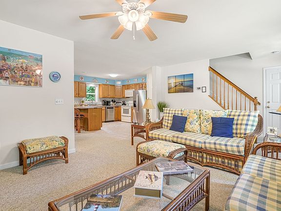 This 2bed ++/3-bath home offers comfort & functionality. Step inside to discover a spacious living room w/fireplace. The kitchen features oak cabinetry, tile flooring & breakfast bar. The primary suite is a true retreat w/tiled bathroom w/luxurious soaking tub for two. Additionally, there is a separate laundry/mud room, additional bedroom & full bath w/tile flooring on the main level. Upstairs you'll find a cozy sitting room, two additional bedrooms, each adorned w/beautiful hardwoods, & another bathroom w/soaking tub. Outside, enjoy the serene, wooded backyard from the comfort of the screened-in porch or entertain guests on the rear deck. An outside shower adds a convenient touch for rinsing off after a day at the beach. A shed provides extra storage space for all your outdoor essentials.