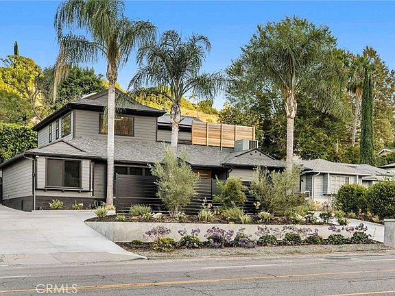 Gorgeous, South of the boulevard modern farmhouse located in the highly sought-after Sherman Oaks Hills. Situated on an expansive 10,474 square foot lot, this stunner features over 3,643 square feet of bright and open living space with seamless indoor-outdoor living and a true entertainer’s paradise backyard. Enter into the great room, with dramatic two-story ceilings, beautiful wood floors, steel beamed accents, and a picturesque view of the stunning backyard.