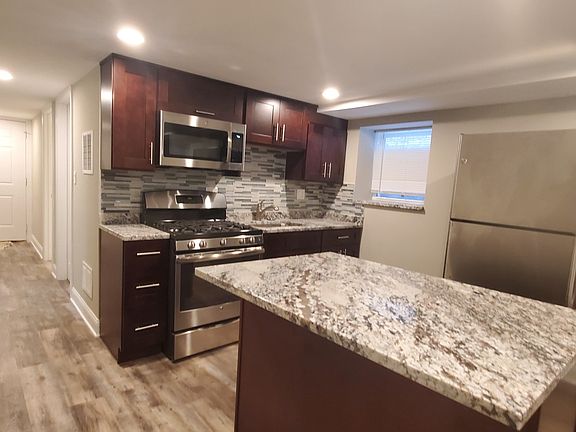 Beautifully remodeled, this all-new garden apartment features 2 bedrooms, 1 bathroom, an open kitchen with an island, granite countertops, and stainless steel appliances. It also includes a private washing machine and dryer. Located on a tree-lined street, it is close to local shops and restaurants. Showings after 11/13/25. 18-month lease or longer only. No pets.