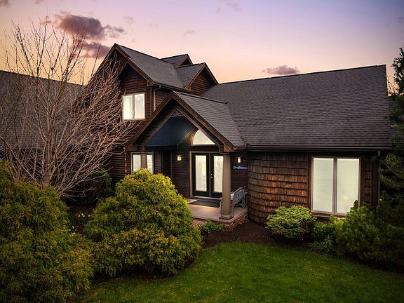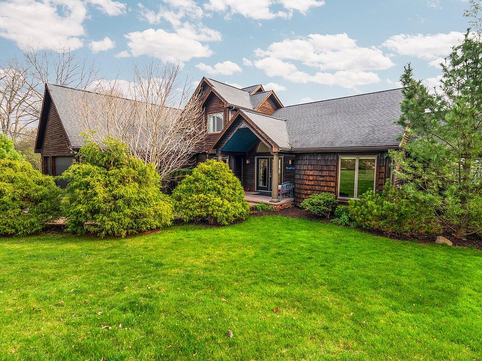 Meticulously designed to live in harmony with its natural surroundings, this stunning cedar home in Loch Alpine offers both luxury and serenity. Nestled on .66 acres atop a hill overlooking meadows and woods, the property is surrounded by mature plantings, flowering trees, perennials, and thoughtfully designed gardens that ensure complete privacy from the street.