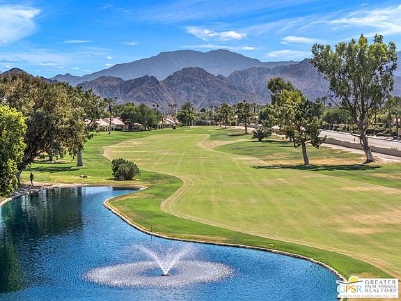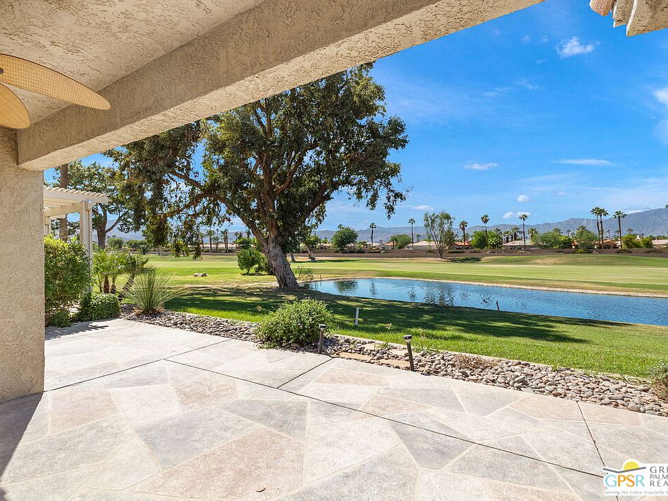 Introducing this timeless Classic Model, gracefully situated within the gates of Palm Desert Resort Country Club. Overlooking the tranquil waters of Taylor Lake and the lush expanse of the 8th fairway, this residence captures breathtaking panoramic views of the majestic Mt. San Jacinto Mountains offering a truly unparalleled setting and a location that is second to none. This Classic floor plan showcases soaring cathedral ceilings, overhead fans, a glass-enclosed gas fireplace, a breakfast bar, a formal dining area, and recessed lighting. The tastefully remodeled kitchen (2021) features quartz countertops, extended counter space, updated stainless steel appliances, crown molding, and recessed lighting combining functionality with modern elegance. Thoughtfully designed for privacy, the two bedrooms are separated by the main living and entertaining spaces. The primary suite welcomes you with bi-fold doors, slider your patio, and its ensuite bath has been beautifully upgraded with a craftsman-quality walk-in shower and custom built-ins. Features that offer convenience include a private driveway, a two-car garage with built-in storage, and convenient inside laundry. Comfort and efficiency have been enhanced with updated ductwork (2022), new insulation (2023), and a powerful 4-ton A/C system (updated in 2018 with biannual servicing). Additional upgrades include custom blinds, a MyQ smart garage system and an integrated air scrubber for improved indoor air quality, and much more. Outdoor living is equally inviting, with an 8-foot extended patio finished in elegant stamped concrete the perfect space to take in the peaceful lakefront setting and panoramic mountain views. The Palm Desert Resort Country Club has a beautiful clubhouse, Coachella Valley's premier pickleball and tennis club, and an award-winning golf course. The resort is a very active community with a clubhouse (includes formal dining, a lounge, and a pro shop), and 20 pools and spas. The Resorter has a guard gate with 24-hour security. There is proximity to dining and shopping. Desert activities include hiking and biking trails near the resort. You will be in paradise out on the patio, enjoying the sunset views and resort ambiance! This is a must-see!