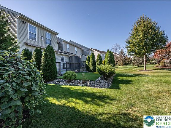 Welcome to this beautifully updated end-unit townhome offering over 2,200 square feet of living space not including the fully finished basement! This spacious and stylish 3-bedroom, 2.5-bath home blends comfort, quality, and modern upgrades throughout. The main level showcases an inviting living room with a custom stone fireplace wall, elegant tile backsplash in the kitchen, and tasteful finishes throughout. The open-concept layout flows seamlessly from the kitchen and dining area to the large deck with a retractable awning—perfect for entertaining or relaxing outdoors. Upstairs, you’ll find 3 generous bedrooms, including a luxurious primary suite featuring its own fireplace, a customized walk-in closet, and a beautifully appointed ensuite bath. The fully finished lower level adds flexibility with a third fireplace and plenty of space for a family room, home office, gym, or media area. Additional highlights include a newer AC unit, new water heater, and custom stone accent walls that add a touch of sophistication throughout the home. Ideally located just minutes from Rts 33 and 78, this property is perfect for commuters to New York or New Jersey. Plus, enjoy unbeatable amenities right across the street at the Bethlehem Township Municipal Complex, offering basketball courts, a gym, indoor and outdoor pools, and much more! This home has it all, modern upgrades, exceptional space, and a prime location. Move right in and start enjoying the lifestyle you’ve been looking for!