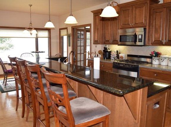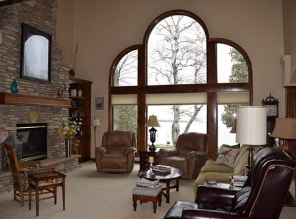 Exceptional 2-story quality-built home on Sand Bay Point with panoramic water views. Enjoy the sunrises from the east and the sunsets in the west from almost every room in the house. Grand two-story entry, Trey ceilings master bedroom and coffered ceilings in the 18-foot great room ceiling, hardwood flooring, granite countertops, cherry cabinetry and woodwork. Excellent floor plan with master suite on the main floor, second level open to below, and year-round sunroom on the southwest side. Massive floor-to-ceiling fireplace. Four bedrooms plus bonus room above the garage and lots of storage. Combination small stone shoreline with dock. Dredged channel for ingress and egress by boat. A perfect home in a perfect location.