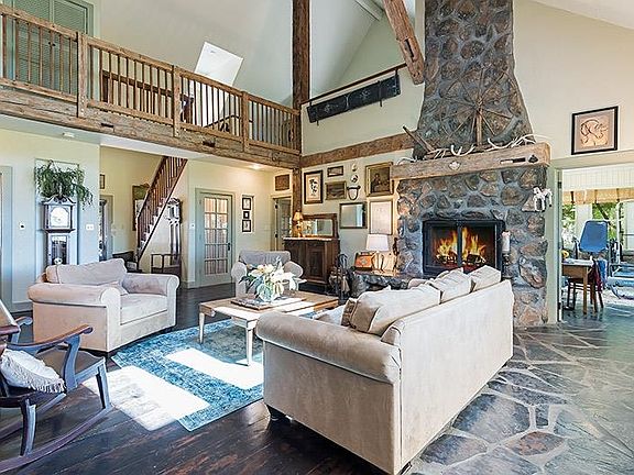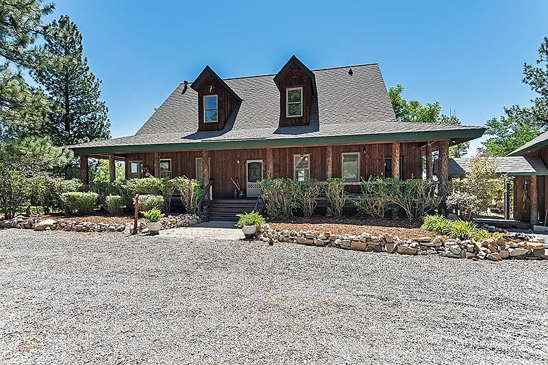 Secluded and nestled in the pines with incredible views, native grass pasture, year round spring fed pond and plenty of water, this ranch with its farmhouse is reminiscent of the old Ponderosa! In fact, that's where the 4 stall barn came from! The home has gorgeous pine and slate floors, huge hand hewn beams and a massive rock fireplace! Artistic detail flows beautifully through all the living areas and kitchen. The master bedroom with its luxurious bathroom and sauna opens to a sunroom and deck and forever views of the pond and sweeping landscapes. Upstairs is a big loft with a bedroom, bath, and office/exercise room that could be a 3rd bdrm. There is a small apartment over the garage. Two large decks and a patio provide relaxation space to enjoy outdoor living along with the views and serenity. This gorgeous setting is ready for horses or other livestock and is only an easy 30 minutes from Reno!