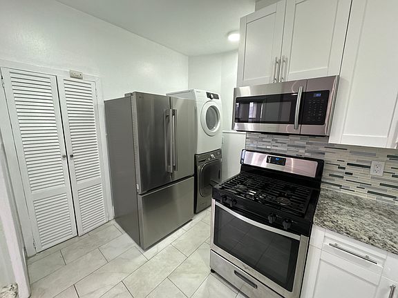 Rent your own Cozy Home! VERY UNIQUE renovated two-bedroom Duplex House in the heart of Edgewater, NJ. Private home in a Multifamily Complex. Granite Kitchen with brand new French door Refrigerator and Laundry In unit!! Freshly painted with an open Living/Dining room. Modern flooring. Bright and Spacious with Lots of windows. Bedrooms are In-Tandem (back to back). Large bathroom. Includes a Dedicated One Parking space in driveway. Located within walking distance of the NYC Bus--Easy NYC Transportation. Use of storage room. No Smoking. No Pets. Available immediately!! A Must SEE . Ask about virtual tour! Requirements: Application, Proof of Income/paystubs, Full Credit report (good credit 700+), Background check, ID. Renter responsible for Utilities, One dedicated Parking space included in rent. No Smoking.