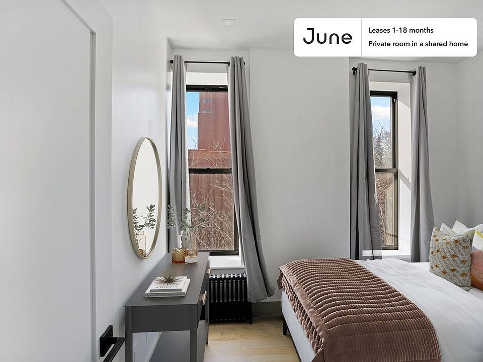 This Full room in Park Slope is available on a 12 month lease or a flexible short term (31 to 364 days) lease. You pick your custom start and end date. Monthly rent rate is determined by furnishing preference, move-in date and move-out date. Speak to a June representative for recommendations on the best stay duration for the lowest rate.