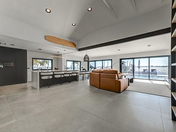 Welcome to your dream coastal retreat in prestigious Brightwater Beach Estates of St. Pete Beach. This stunning 3-bedroom, 3-bath waterfront home offers approximately 2,253 square feet of open and inviting living space on a beautifully landscaped 10,999-square-foot lot. Designed for indoor-outdoor living, the home features large modern windows that fill the space with natural light and capture breathtaking views of Boca Ciega Bay, where dolphins are seen daily. The updated kitchen is equipped with high-end appliances and opens to spacious living and dining areas, perfect for entertaining. Step outside to a private backyard oasis with a sparkling pool, hot tub, expansive patio, and gentle bay breezes that make every day feel like a vacation. Additional highlights include an attached two-car garage, new windows, roof, seawall, dock, 30k lb boat lift and more!