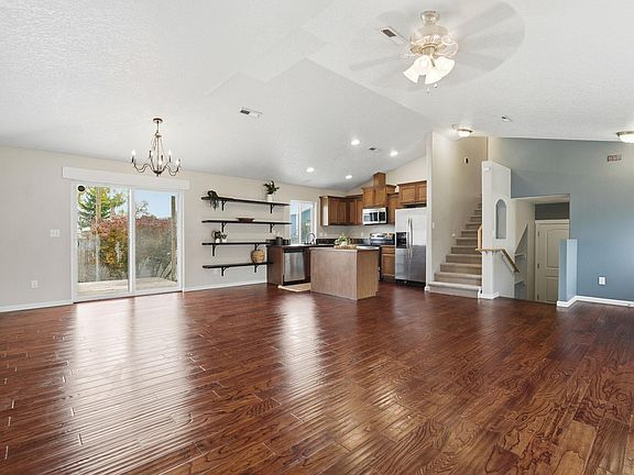 Don’t miss your chance to own this beautifully maintained 3-bedroom, 2-bath home built in 2013! Featuring an open-concept layout with vaulted ceilings and large windows, this home is filled with natural light. The spacious kitchen includes a center island, generous cabinet space, and stainless-steel appliances—perfect for everyday living and entertaining. Enjoy brand new hardwood floors, a comfortable primary suite, and a super-deep 2-car garage with ample storage. The fully fenced yard offers raised garden beds, a double gate for RV parking, and a patio for outdoor gatherings. Additional features include a water softener, gutters, and timed underground sprinklers.