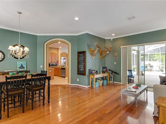 This home puts a check in every box! Beautiful gated community with stately entrance, and lush lawns. Gorgeous street presence. Wide open formal living and dining room with wood floors. A kitchen that will make you the envy of your friends: Gas cooktop with indoor grill, Thermador range hood with warming lights, double convection wall ovens, a convenient island with wine refrigerator housing a your private wine collection, 42" upper cabinets, pull-out shelves, a handy desk area, and spacious pantry area. This lovely kitchen flows into the large family room with sliders to the pool area- perfect for hosting summer gatherings. The pool area offers a wonderful covered area for seating poolside while the lions head fountains add to the ambiance. The option of solar or gas heat extends pool season. Summer cooking is easy with a gas line directly feeding your grill. The fenced yard gives Fido plenty of room to roam. The two secondary bedrooms and bath are removed from the family room to provide peace and privacy. The master suite is located on the other side of the home to create your personal retreat. Dual vanities, a garden tub with spa jets, and a separate shower complete the master bath. With hurricane season in the future you'll appreciate knowing that this home is natural gas generator ready. This home offers so many features expected in those twice this price. It's a smart purchase that you'll enjoy for years to come.