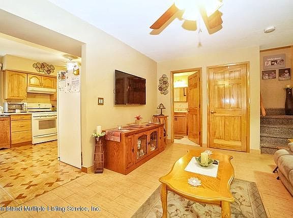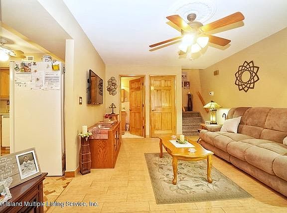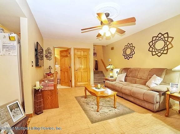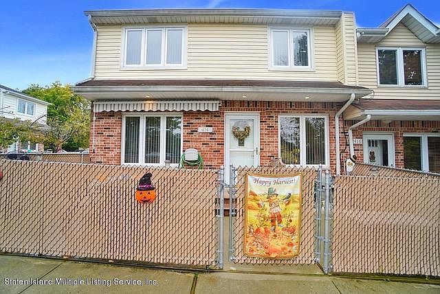 Spacious, Beautifully maintained, 3 Bedroom end-unit townhome. Large Eat- In Kitchen with corian counter tops, Ceramic Backsplash & new faucet, sliders to side and front yard. Front yard with new steps and concrete patio great for entertaining, sun awning. Newer hot water heater, central air , and heating system. Home is spotless. 1st floor Entry formal large living room, large eat in kitchen w/ Sliders to yard, 1/2 bath, with linen closet, Laundry and utility room Level 2: Master Bedroom w double closets, Bedroom, Bedroom, 3/4 Bath, attic with fan and partially floored. A great opportunity to own a beautifully maintained 3 bedroom end-unit townhome in lovely convenient Great Kills.