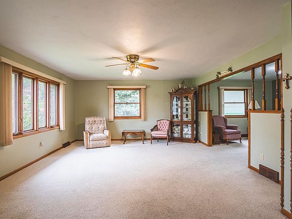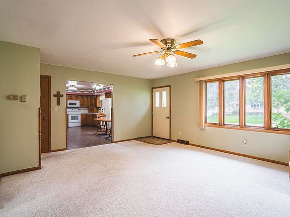For sale is a ranch style home consisting of 1,540 sq. ft. with a large tandem attached garage. There are 2 bedrooms on the main, eat in kitchen, living and TV room, large 3/4 bath (shower has lifetime warranty) which is where the laundry room is. There is a full basement with a large "L" shaped family room, bedroom and 3/4 bath. The central air unit was new in June of 2023 and the house roof has hail damage and replacement will be done. This home has a lot of living and storage area, large deck to a nice open back yard.