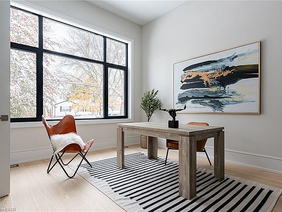 Brand new, never lived-in custom home in Burlington’s desirable Shoreacres community. Set on a tree-lined street and backing onto a park, this residence delivers more than 5,600 square feet of beautifully finished living space and a design defined by craftsmanship and natural light. Enter into the grand foyer with 20' ceiling, 10-inch baseboards, and 7½-inch engineered floors throughout the main level, complemented by in-ceiling, triple pane energy star aluminum windows, in-ceiling speakers and radiant in-floor heating. A front-facing office with 12-foot ceiling, feature wall, and two-sided fireplace offers a refined space to work or study. The open-concept great room centres on a porcelain-clad gas fireplace flanked by custom built-ins, flowing seamlessly into a bright white kitchen featuring JennAir appliances, two sinks, a waterfall quartz island, and matching quartz backsplash. Sliding glass doors open to a covered porch with built-in barbecue overlooking the park—a perfect setting for year-round entertaining. Upstairs, four spacious bedrooms each enjoy their own ensuite. The primary suite includes a walkout terrace, feature wall, and spa-like ensuite with freestanding Mirolin tub, rain and wand shower, and dual vanity. The finished lower level impresses with radiant in-floor heating, a generous walk-up to the backyard, gym, fifth bedroom, steam shower bath, wet bar, theatre room, and recreation area. A rare combination of architectural quality, modern comfort, and family function—all within an exceptional school catchment. Tarion warranty.