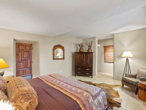 This Historic Eastside home is in the gated four-unit Girard Gardens compound located one block from the Canyon Road Art District of Santa Fe. It consists of a beautifully appointed main house & attached casita/guest house with many options, a dual income generating property or use casita to generate steady income. Both have extensive decks providing views of the Jemez Mountains, the property is located within walking distance to fine dining, Canyon Road, & the Plaza. Inside the secure gated walls of Girard Gardens exists peaceful seclusion, enhanced by beautiful gardens with many walking paths. The main home has a spacious primary suite on the upper level with a large view deck overlooking the gardens & the Jemez Mountain range, providing stunning morning & sunsets views. Downstairs you will find a bright fully equipped kitchen with high-end stainless-steel appliances, a second bedroom suite in which, according to local lore, Georgia O’Keeffe rested when visiting art patron Alexander Girard & his family, a family room, a dining room with kiva fireplace & a large laundry room with storage/pantry space. Three downstairs skylights enhance the home’s natural lighting. Each bedroom has a large walk-in closet. This home is being sold turnkey & fully furnished with all professional designer selected furnishings. Both the home’s walled private garden & the Compound’s common gardens are perfect for outdoor dining/entertaining. The home also includes a detached one-car garage. The casita has 2 bedrooms and a studio space, its own private entrance & includes 3 sets of French doors leading to a private deck overlooking the Jemez Mountains. It also includes its own parking space, making it an ideal in-laws quarters or income producing rental property. This is truly a unique Historic Eastside opportunity in the Girard Gardens Compound.