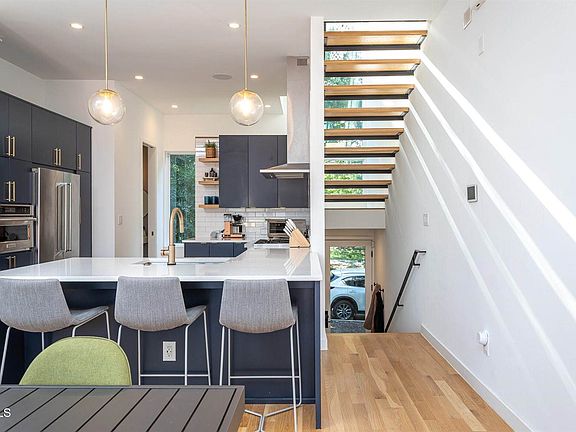 Better Than New, Ready Now. INCENTIVE! $15,000 toward closing costs for contracts that close by Dec 31, 2025. Buy down your rate or use it to style up the home your way. Turnkey modernist home just steps from Transfer Co. Food Hall, the greenway, and Chavis Park featuring Home automation system for lighting, blinds, and music, plus an EV Charger. The chef's kitchen centers the main floor with Bluestar PRO style gas range, quartz counters, high-end appliances, and solid-oak floors that carry through bright, open living spaces. Windows are placed with purpose — skyline to the west, trees to the east, never peering into your neighbor's breakfast room. The morning light filters through the floating staircase, creating artistic shadows on the wall. Downstairs, a FLEX space with its own powder room adapts easily — office, guest suite, or gym — and connects to your private garage. Built by CT Wilson and designed by Clearscapes, this home combines local craftsmanship with enduring modern design. Plus it's in the heart of Downtown Raleigh, 4 blocks from Moore Square. The property qualifies for a $5000 grant using PNC's program to use toward down payment.