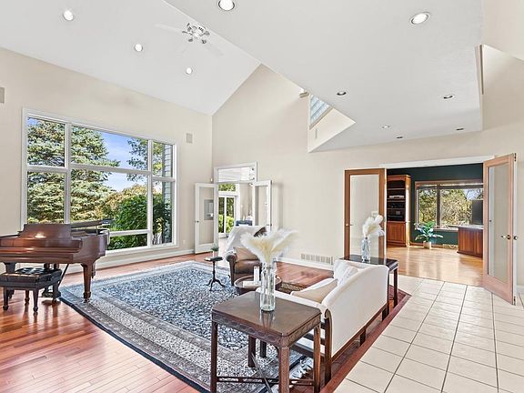 Experience refined living at this stand-alone executive 3BR, 3.5 bath condo nestled in the picturesque Hickory Meadows neighborhood. This spacious 4,000 sq. ft. home features a sun room, den/office, formal DR, breakfast room, & a finished LL, offering an abundance of luxurious living space. The living room impresses with its 20' ceiling, large windows, & tons of lighting, which elevates the home's elegance. Enjoy the high-efficiency gas fireplace & the beauty of Brazilian rosewood floors. The gourmet kitchen is a chef's dream with solid surface counters, double ovens & sinks. Primary ensuite offers a luxurious retreat with jetted tub, separate shower, granite vanities, & walk-in closet. Step outside to a stunning brick patio that connects 2 decks, perfect for entertaining & relaxing.