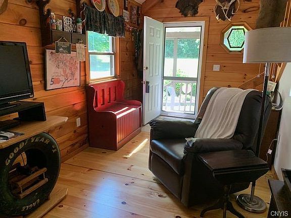 Picture perfect log home nestled on 2.97 acres near the southern end of Skaneateles Lake. Property backs up to 701+/_ acres of Spafford Forest -State park land that is open for hiking and exploration. Maps available.