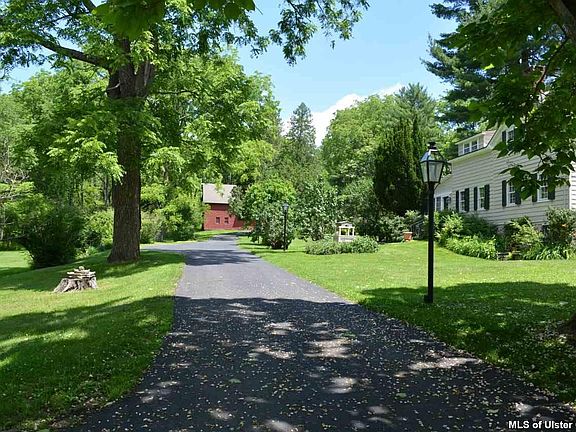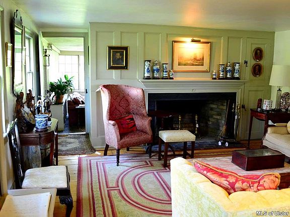 Built in the 1800s and remodeled in 1932 by renowned restoration architect Myron Teller, this antique colonial farm house resonates with contemporary tastes and leaves room for individualization by the next owner. Spacious living/formal dining rooms and glorious enclosed and screened porches with stone floors and fetching 16.2 acres private grounds make this a haven for entertaining. Partly wide-board wood floors, some carpet and painted wood floors in bedrooms. Inground gunite pool currently closed, but ready to be reanimated. Top notch 1930 barn structure was once a social club with dance floors, patio and elevated stage for the band. With some dusting and finishing, this could be a great space for gatherings, a workshop or studio. Close to village of Stone Ridge, Rosendale, High Falls and the Marbletown O & W Rail trail.