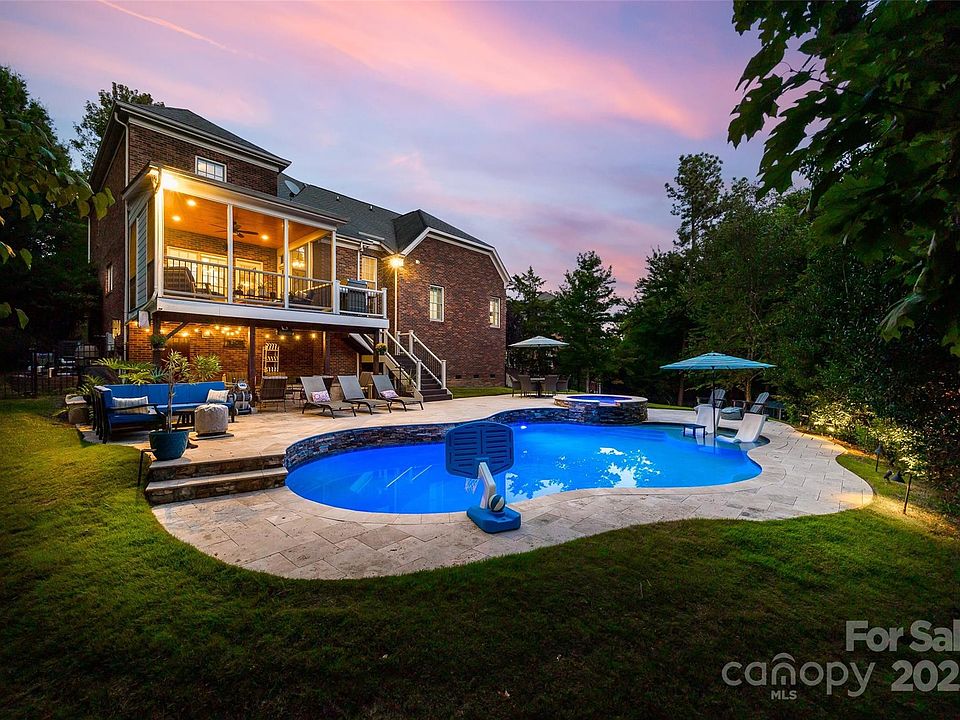 Gorgeous backyard with Saltwater POOL & Spa! Brick home on a Cul-de-Sac in Tega Cay's Lake Forest section of Lake Shore. 3 car side entry Garage. Primary Bedroom on Main, with new floors & built in closet system. Updated Kitchen with beautiful quartz countertops, new backsplash, white cabinetry & designer cabinet hardware. Two kitchen islands, plenty of space to entertain & cook with upgraded lighting! Dining area in kitchen, formal dining room currently used as the library with stunning custom cabinetry. Office on the main floor with marble flooring & designer lighting. Remodeled laundry with cabinets & design tile floor. Upstairs 3 bedrooms plus a bonus/5th bedroom. Large walk in storage. Full bath with dual sinks & design tile flooring. 9' ceilings both levels. Tankless hot water system. Screen porch with composite decking overlooking the pool area. Heated pool & spa with waterfall feature & sun shelf level in pool. IAqua Link pool system. Travertine pool surround & Covered Patio. Professional Landscaped, exterior lighting, Rachio 7 zone smart irrigation front, back & sides. Gutter guards. Private spacious backyard on this .61 lot with black aluminum fencing. Garage has storage shelves & hoist. Enjoy the recreational city of Tega Cay, SC a peninsula on Lake Wylie. Amenities include waterfront beaches, parks, playgrounds, boat ramps, sports courts, walking trails, tennis, pickleball, etc. The Tega Cay Golf Club has 27 holes of golf, a driving range, putting green & restaurant. Join the Tega Cay Beach & Swim Club. Rent a boat at the Tega Cay marina. Fort Mill Schools listed are the zoned schools per FMSD website. Please verify current schools with FMSD. NO HOA.