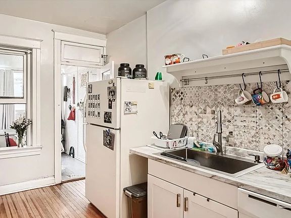 A lovely three 3 bed plus office / 1.5 bath unit with hardwood floors throughout, galley style kitchen that leads out to a private back yard. This is a 3 level property, the bedrooms on the upper level and living area is on the main level. There are large windows in each room so bright. Old fashion kitchen pantry & built ins for storage and abundant space in the basement, with 2 additional useable rooms, that could be set up as an office, tv room or exercise room. Dedicated washer and dryer. Back yard is private, secure and fenced. Home is perfect set up for a family, or 3 roommates or a couple that requires flex space for working at home. Front porch is lovely. The kitchen has been remodeled with newer cabinets and floors! A powder room has been newly added!