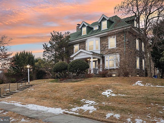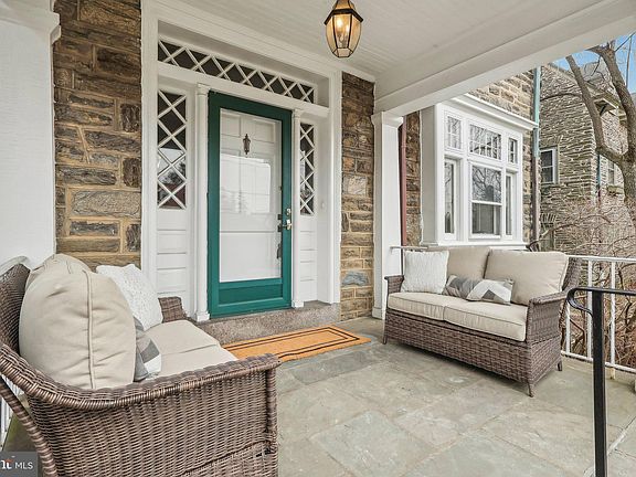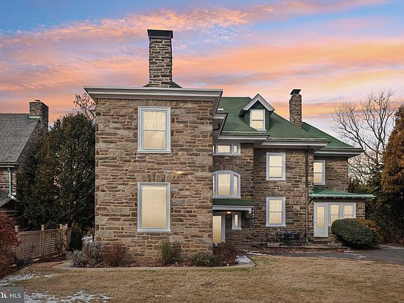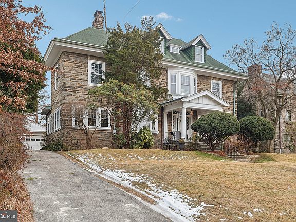 Local architect Howard Smith Richards teamed up with builder and fellow Gowen Avenue resident Horace Burrell to build this stunning addition to the historic Gowen Estates. With only four owners since its completion in 1907, this timelessly elegant home is ready for new owners. The welcoming, gable-end front porch not only provides incredible curb appeal, but offers a lovely spot to enjoy morning coffee or chat with neighbors. Enter the freshly painted foyer with high, coffered ceilings. French doors lead to a cozy living room with a gas fireplace, a perfect spot to warm up after arriving home. Just beyond the living room is a fabulous sunroom with exposed stone walls and access to the patio, offering an ideal layout for entertaining. To the right of the foyer sits the formal dining room which can easily accommodate your family gatherings. Enjoy unique touches such as the stained glass window panes and a beautiful window etching created by the current owner. A very large eat-in kitchen with high ceilings and a convenient powder room complete the first level. The upper floors provide a good deal of flexibility. A spacious primary ensuite features a deep window seat and a four-piece bathroom with all new plumbing. The adjoining study with custom mahogany bookshelves is the perfect space for an office or den. Two additional large bedrooms, a full bathroom, and a spacious and sunny laundry room round out the 2nd floor. Continue up to the 3rd floor which offers a flexible floor plan and excellent storage. You will find a large, bright bedroom as well a multi-purpose room recently used as an art studio, which could easily be another bedroom. A smaller storage area makes a sweet playroom or office space. There is a third full bathroom and a large storage room. You will fall in love with the spectacular rear yard, with a gorgeous white oak as its centerpiece. Wander among mountain laurel, hydrangea, rhododendron and much more while enjoying fresh figs from your very own fig tree (currently wrapped for winter). Gardeners will delight, as will anyone looking for a large, flat yard to enjoy. A very deep, detached garage offers plentiful parking, storage and even renovation possibilities. Located on a lovely street once The Prettiest Street in Mt. Airy, this home sits just .4 miles from the Mt. Airy train station and less than a mile from numerous restaurants and shops.