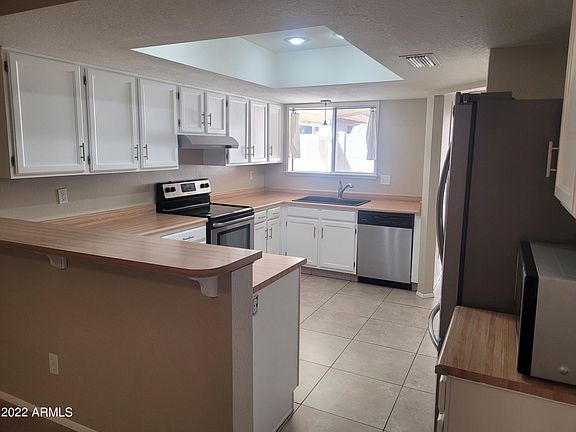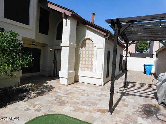 Great 3 bed 2.5 bath in North Phoenix! Nice neutral paint. Tile downstairs and Carpet upstairs! Ceiling fans and blinds throughout. Cozy up to the fireplace on those cold winter nights. Large dining area. Kitchen features nice bright white cabinets, plenty of counter space and all stainless steel appliances. Washer and dryer located downstairs. Downstairs has both a family room, living room and half bath. All bathrooms have new bathroom vanities and faucets. Spacious master bedroom has en suite with walk in closet. Fenced front/side and back yard. Enjoy evening BBQ's under the pergola. Two car Garage has storage cabinets. Storage room and covered patio out back. Doggie door. Great location with easy access to Loop 101. Minutes to Desert Ridge, I-51 and I-17 Frwy, Scottsdale and more!