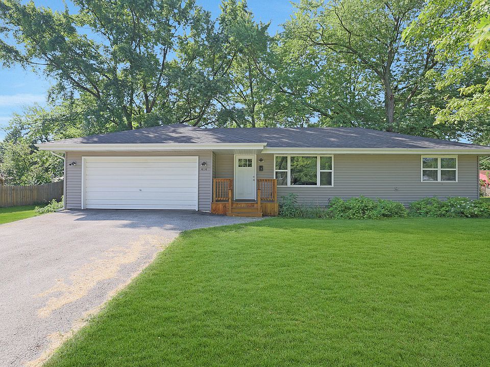 Wonderful open-concept ranch beautifully remodeled in 2019 with all new white Kitchen Cabinetry including large center island, stylish tile backsplash, S/S appliances, luxury vinyl flooring, and abundant recessed lighting. Spacious Living room has lovely picture window and is open to Kitchen, great for entertaining. Relax knowing: All newer roofing, siding, windows, doors, lighting, driveway, front porch, concrete patio, electric & plumbing as of 2019 - complete rehab! Three Bedrooms with generous closets, center ceiling fans and gorgeous custom-tiled hall bath round out the main floor. Enjoy the convenience of the attached 2 car Garage and the fully poured unfinished Basement (enter from the garage) with another (900 square feet) awaiting your ideas. Huge backyard offers great outdoor space for activities and fun. Hurry and take advantage of this outstanding opportunity. Welcome Home!
