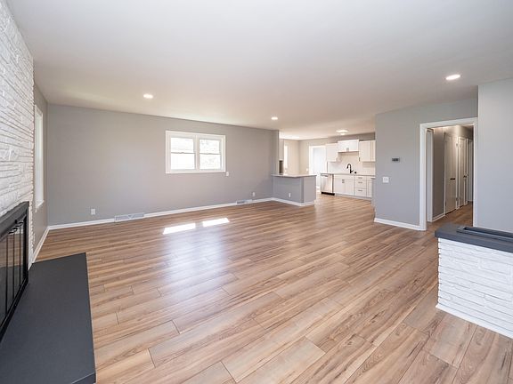 Fully remodeled home in a great location- Enjoy the public beach at Red Woolfe Park & public track! This sprawling ranch feels like a brand-new home. Open-concept kitchen, dining and living room (w/firelplace) gives you feel of endless space. Bedrooms are large. Primary bedroom has walk-in closet and direct access to full bathroom. Guest bathroom is large with dual sinks. Storage is easy with hallway closets. Enjoy sunset over the lake from sunroom. Basement offers lots of space for enjoyment with 33x15 Rec Rm w/ fireplace. Another finished room for home office, bedroom, etc. Tons of built in storage! Too many upgrades to list them all but include big ticket items like windows, flooring, kitchen & baths. Newer furnace & a/c. Enjoy private patio behind two-car garage.
