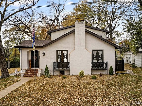 Charming English Cottage in Historic Old Town Florissant! Step into timeless elegance with this 2,886 sq ft English cottage that blends historic character with modern updates. The mostly brick exterior and arched covered front porch welcome you into a spacious 10x12 foyer, setting the tone for this beautifully maintained home. The 27x14 living room features refinished hardwood floors, a cozy gas fireplace, a skylight, a wall of built-ins, and dual French doors opening to charming balconies—perfect for relaxing or entertaining. The adjoining 18x13 dining room flows seamlessly into the kitchen, which opens through sliding glass doors to a 13x12 screened-in porch w/ brick floor The main floor offers a primary suite with a walk-in closet and vanity area, a second spacious bedroom, and a stunning black-and-white tiled hall bath with a large glass-enclosed shower, basket weave flooring. Upstairs, a beautifully crafted hardwood staircase with skylight leads to three generous bedrooms—two with French doors to private balconies—and a large hall bath featuring dual sinks, a tub/shower combo, and a walk-in linen closet. Additional highlights include an oversized 23x13 tuck-under garage, updated plumbing, and a newer driveway with plenty of parking space. Don’t miss your opportunity to own this distinctive and spacious home in Old Town Florissant. —Old Town living at its finest! Imagine hosting your holiday parties in this amazing home. Make it happen!!! Enjoy walking or taking a golf cart ride to all the fabulous festivals, parades and shops that Old Town Florissant has to offer.