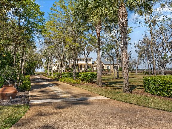 Stellar views of the Frederica River and the Marshes of Glynn greet you throughout this elegant, coastal architectural gem. Designed by the award winning architectural firm, Harrison Design, the coastal architecture captures inspiring views in the light filled rooms. Located on a 2.45 acre estate lot(the owners assembled two lots), the lovely, furnished home is sited on the peninsula portion ensuring optimal privacy and unobstructed vistas. Exquisite details continue in the interiors with stone, hardwood and marble floors and intricate millwork including deep crown moldings, wainscoting, and custom cabinetry. There is beautiful ceiling interest with typically 11-12 ft. ceilings with some being vaulted, beamed or having tongue and groove finish. A private drive leads to an auto court with an intricate design and nearby 3 car garage. Coral stone front steps escort you to an entry stair hall, and eyes are immediately drawn to the view of the elegant terrace and pool courtyard with golden marshes and the sparkling river in the distance. Flow into the combined living/dining area, with its intricate custom millwork, which empties to the outside terrace through French doors. A climatized 1000 bottle wine room is conveniently located adjacent to the dining area. The gourmet kitchen has a vaulted, tongue and groove ceiling and top of the line appliances including a Thermador six burner range with griddle and Double Thermador professional ovens, Subzero refrigerator and Bosch DW. Its custom island has a charming banquette and bar seating. An adjacent family room is the perfect spot for family entertainment or to just relax. A private study/library is made especially cozy with a fireplace, pine clad walls and plenty of shelf space with library lighting to house your favorite books. Magnificent primary suite has hardwood floors, beautiful moldings and incorporates its own sitting area plus a screened porch which allows you to enjoy the sounds and fragrances of nearby nature. The marble filled master bath encourages luxuriating and relaxing. The heated, marble floor has a classic basket weave pattern. There is a breakfast bar with mini fridge near the master closet which has tremendous hanging space, a built in packing chest with drawers, a storage bench and shoe shelves. Upstairs are three additional suites with their own baths and a charming sitting area. The sitting area and one suite have access to the front balcony. The two other suites empty on to an upstairs screened porch with sitting/dining areas and a swing to enjoy the breezes and views. A guest suite is separated from the main house by a delightful screened porch which is convenient to the nearby pool and terrace. This screened porch has a summer kitchen that includes a built-in grill, cooktop, icemaker, dishwasher and refrigerator. The guest suite enjoys excellent views, double closets and a Jack/Jill bath also used for the nearby pool. There is a multi-purpose bonus room over the garage with half bath. A top of the line, whole house generator ensures no power outages. The terrace and pool court incorporate coral stone and feature a heated, saline pool, a cabana, hot tub and fire pit. The home is within Hawkins Island, a Sea Island developed community accessible by a lovely bridge beyond a full time guarded gate entrance. Walking and bike paths wind through azalea lined green space on Hawkins Island which is just minutes away from shopping, dining and the world class amenities of Sea Island. Being sold furnished, this home is easy to tour.