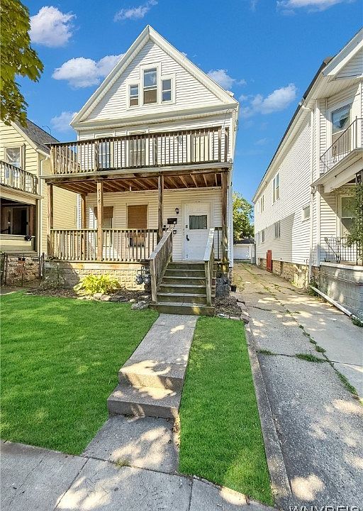 Huge 2 family vinyl sided home walking distant to Buffalo State College. 3Br lower and 2Br upper. Double washer dryer hook-ups in basement. 1999 electric service. Two forced air furnaces. 1/2 roof was tear off about 7 years ago. Great investment property for your portfolio!