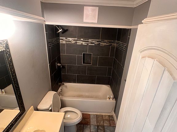 Updated full bath with stylish tile work, added niche or accent tile for modern appeal.