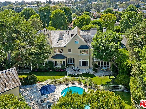The epitome of a grand Little Holmby Estate. Set above a premiere neighborhood street with a motor court and 3 car garage, this stately residence boasts all the desired modern amenities yet retains its classic traditional heritage of hardwood floors, crown moldings, chair rails, and wainscoting throughout. The ideal center hall plan includes formal living & dining rooms, family room with wet bar, wood-paneled library, gourmet center-island kitchen with stainless Sub Zero, Wolf and Gaggenau appliances and maids bedroom with bath. Upstairs features 4 generous ensuite bedrooms including a grand master suite with a large sitting room with fireplace and wet bar, inviting balcony, spacious dual closets, sumptuous marble bath plus dual showers, and a bonus 5th attic bedroom with bath. The oversized yard consists of expansive lower grassy pad with patios and ample upper pad with sparkling pool and full guest house with kitchenette, living room, bath and loft bedroom. Warner Avenue School