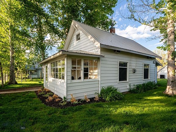 This charming, turn-of-the-century cottage in Willow Creek is ready for you! A blend of vintage style with modern updates, this super cute home is move-in ready! Enjoy the sounds of seasonal live water and the melodic songs of birds. A charming glass surround sun porch welcomes you inside. Main level features original wood flooring and an open floor-plan with thoughtful use of space. The kitchen features plentiful cabinetry and storage. Excellent natural light permeates the living room and dining area with plentiful windows – a gas stove keeps the space cozy. The task space/office nook under the stairs is ready for your fly-tying bench. A remodeled, subway tile-surround full bath on main and laundry/mud room with washer/dryer complete the main level. Upstairs are two restful bedrooms with ample closet storage. The home features a water filtration system, natural gas service and updated windows. The detached shop/garage has power and provides tons of great storage. The extra-large fenced lot features beautiful shade trees, lush lawn, fenced yard, fenced garden area and a small orchard of fruit trees including plum and apple trees. Enjoy life in the quaint town of Willow Creek which includes indulging in the storied BBQ ribs at Willow Creek Café & Saloon and perusing the rotating art exhibits at Aunt Dofe’s Gallery. Recreational opportunities are plentiful in the area with fly-fishing and floating on the blue-ribbon waters of the Jefferson, Missouri, and Madison Rivers and Willow Creek Reservoir, mountain biking, hiking and cave exploring at Lewis and Clark Caverns State Park and summer music and entertainment options all close by. No known zoning or covenants – buyer to verify. Willow Creek School is located right across the street. Just 10 minutes by car to Three Forks, 35 minutes to Yellowstone International Airport, 35 minutes to Bozeman. Don’t miss the 360 VR Matterport Tour!