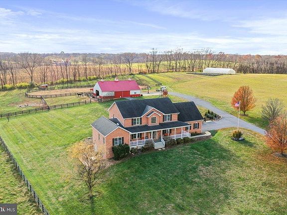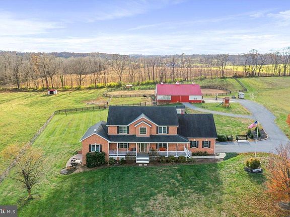 Welcome to 414 McMurran Farm Lane, this remarkable property was built for comfort, leisure, and everyday ease. Offering over 5,600 square feet of beautifully designed living space and an adjoining lot (Lot 6) for a total of 18+ acres, this property delivers a rare combination of luxury, functionality, and rural tranquility. From the moment you arrive, the mature tree lined driveway and expansive 365 degree views create a serene and inviting atmosphere. Inside, the home features new wide plank hardwood floors, new crown molding and wainscoting, and custom built-in carpentry throughout, including desks, bookcases, mudroom lockers, and more. The main level includes a generous primary suite and a thoughtful floor plan enhanced by new granite countertops, several new appliances, exceptional storage, and a convenient dog/utility shower in the mudroom. Two gas fireplaces add warmth and charm, while the fully finished walkout basement provides additional space for comfort, by including its own kitchen & full bathroom making it the perfect space for guests, extended family. Outdoor living is a standout with a heated pool, pergola, granite outdoor bar, hardscape patio, and a built-in fire pit, creating a true retreat for relaxation or hosting gatherings. And if you want to enjoy the best of both indoor and outdoors just relax in the sunroom which is temperature controlled and inviting all year round. You and your guest will always have ample parking for your gatherings with the extended driveway and oversized two car garage. So whether you are lounging poolside or relaxing on the front porch watching the sun go down this home has something for everyone to enjoy. For horse lovers, hobby farmers, and anyone seeking a self-sustaining lifestyle, the property includes an impressive equestrian setup and agricultural features. The barn offers two horse stalls and a dedicated tack area, while the fenced paddocks and lighted riding arena provide an excellent environment for training, exercising, and everyday care. Two run-in sheds offer additional shelter, and the high tunnel is ideal for gardening or year-round growing. The acreage and community allow for horses, goats, chickens, and other small livestock, giving you the freedom to maintain the farm or homestead of your dreams. Plus the finished detached garage functions beautifully as a workshop, home gym, or car enthusiast space. Additional highlights include well-maintained HVAC and home systems, abundant closets and storage throughout, new granite counters, and a built-in security and fire alarm system (subscription required for monitoring). If you commute daily then you will really enjoy that it’s located within minutes to a MARC station in a peaceful neighborhood with large rural lots, this exceptional estate offers privacy, versatility, and endless possibilities while remaining close to everyday conveniences. 414 McMurran Farm Lane is more than a home, it's a lifestyle waiting to be experienced.