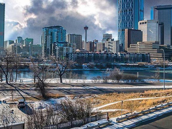 Amazing walkable location with unobstructed south-facing city and river views from this one-bedroom condo. Offering just under 650 sq ft, the bright open-concept floor plan is filled with natural light and designed for comfortable everyday living. The kitchen features quartz countertops, modern white cabinetry, and a large island ideal for both prep and entertaining. The well-appointed living area showcases stunning downtown and river views, providing an incredible backdrop day and night. The spacious bedroom also enjoys views of the river and city skyline. Step outside to your private south-facing balcony and take full advantage of Calgary's summer months while enjoying even more breathtaking views. The unit includes heated titled underground parking, access to a common bike storage room, and ample underground visitor parking. Located in the desirable Vu building on a quiet dead-end street, traffic is minimal, creating a peaceful, destination-style setting. You're just minutes from transit, Bridgeland, East Village, and downtown, offering the perfect balance of privacy and convenience. This home delivers an exceptional inner-city lifestyle with easy access to Calgary's best amenities. A fantastic opportunity awaits.
