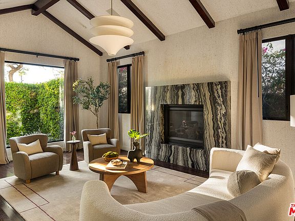 Tucked behind gates and set back from the street, this beautifully updated Spanish-style home blends timeless architecture with thoughtful modern touches. With four en-suite bedrooms, five bathrooms, a two-car garage, and a saltwater pool, spa and sauna, the home offers the perfect balance of comfort, space, and style. A dramatic entryway opens to an airy, open-concept living and dining area. Vaulted ceilings and large windows fill the space with natural light, creating a warm and welcoming atmosphere that flows easily into the private, landscaped backyard complete with a pool and spa, ideal for relaxing or entertaining. The chef's kitchen is both functional and inviting, featuring custom cabinetry, ample counter space, and quality appliances that make it just as great for hosting as it is for everyday living.Upstairs, the primary suite is a peaceful retreat with a spacious bathroom, two large walk-in closets, and a balcony that overlooks the grounds. Two additional bedrooms have its own en-suite bath and are finished with care, offering both privacy and flexibility. A spacious outdoor terrace off the 2nd floor landing with a fire pit is perfect for lounging and relaxation. Just minutes from The Grove, the Original Farmer's Market, LACMA, and all the shops and restaurants on Third Street, this home sits in the heart of one of LA's most vibrant neighborhoods. Designed for indoor-outdoor living and full of character, this home captures the best of Southern California warm, welcoming, and effortlessly stylish.