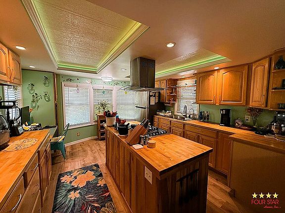 Center islandBuilt-in fish cleaning stationScreened roomFlorida roomButcher block countertopsTray ceilingsUpdated kitchen